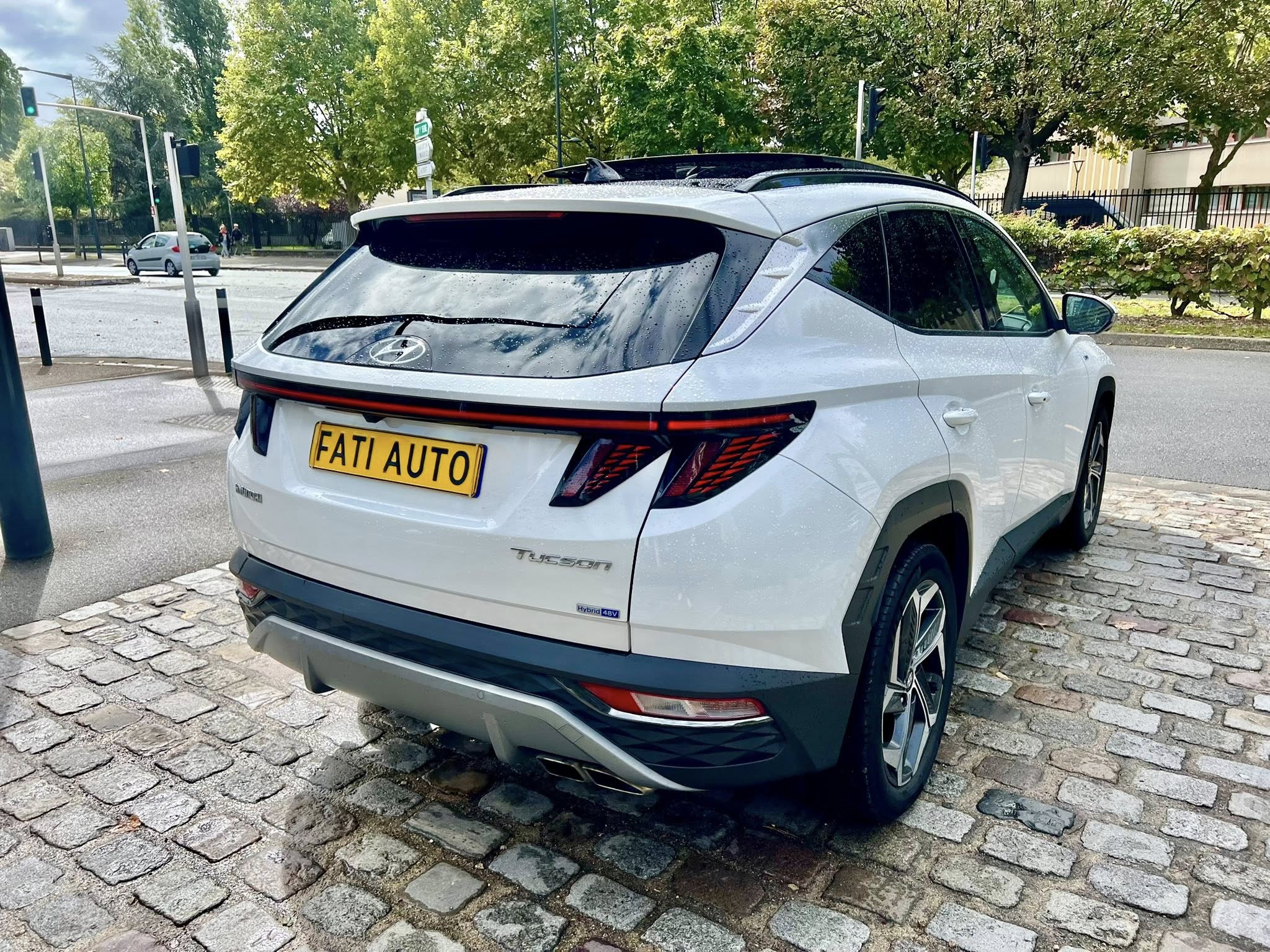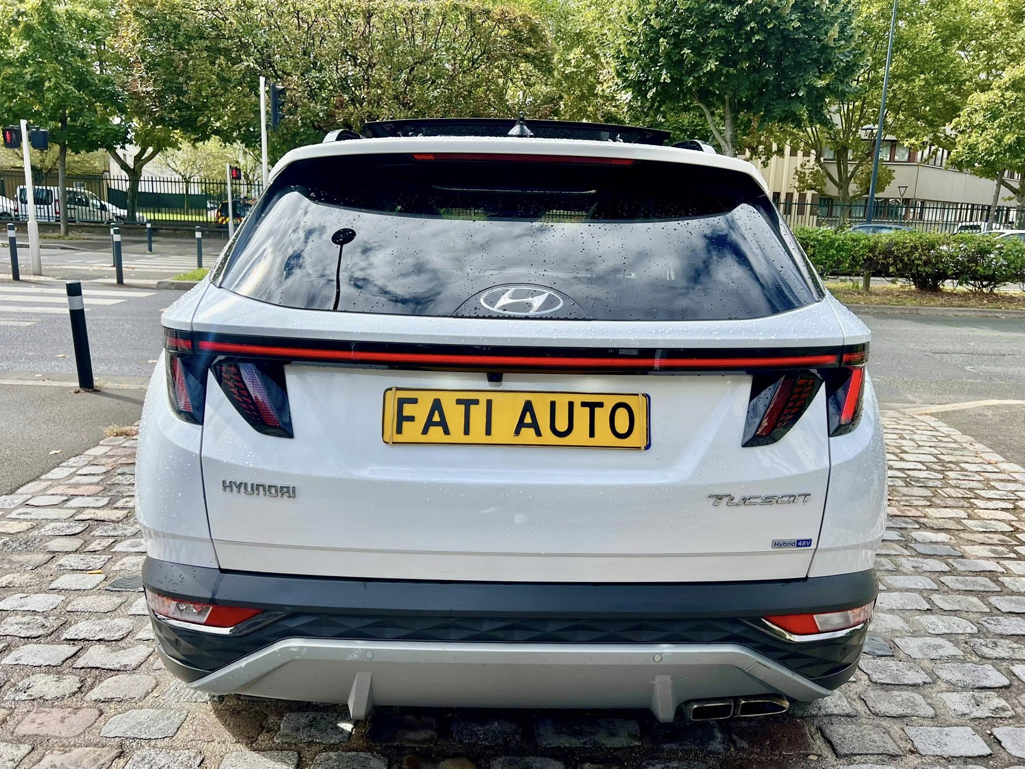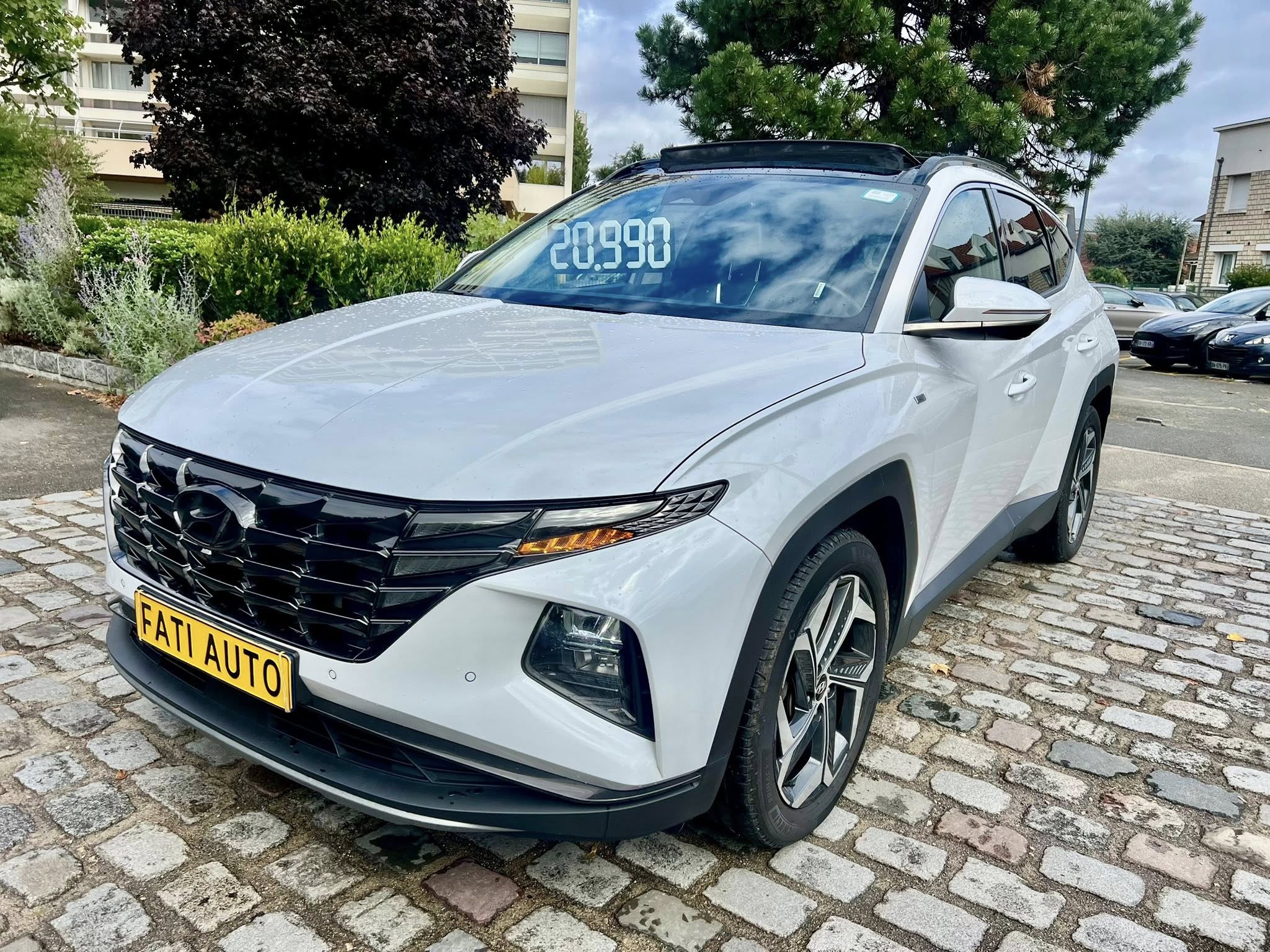 Chers clients SAS FATI AUTO vous propose Hyundai Tucson IV 1.6 T-GDI HYBRID 48V IBVA tout-terrain, blanche 8 cv, 5 portes,