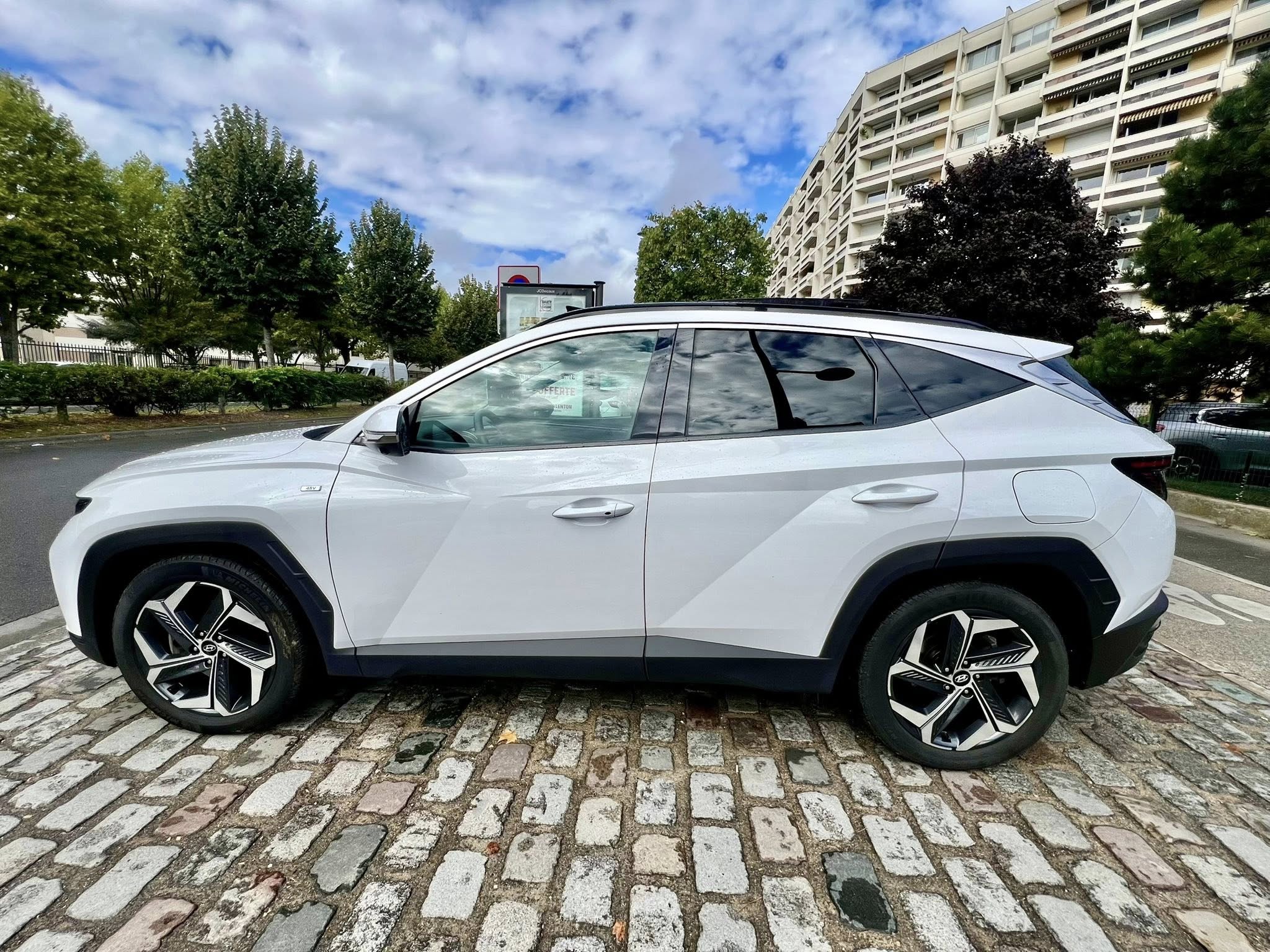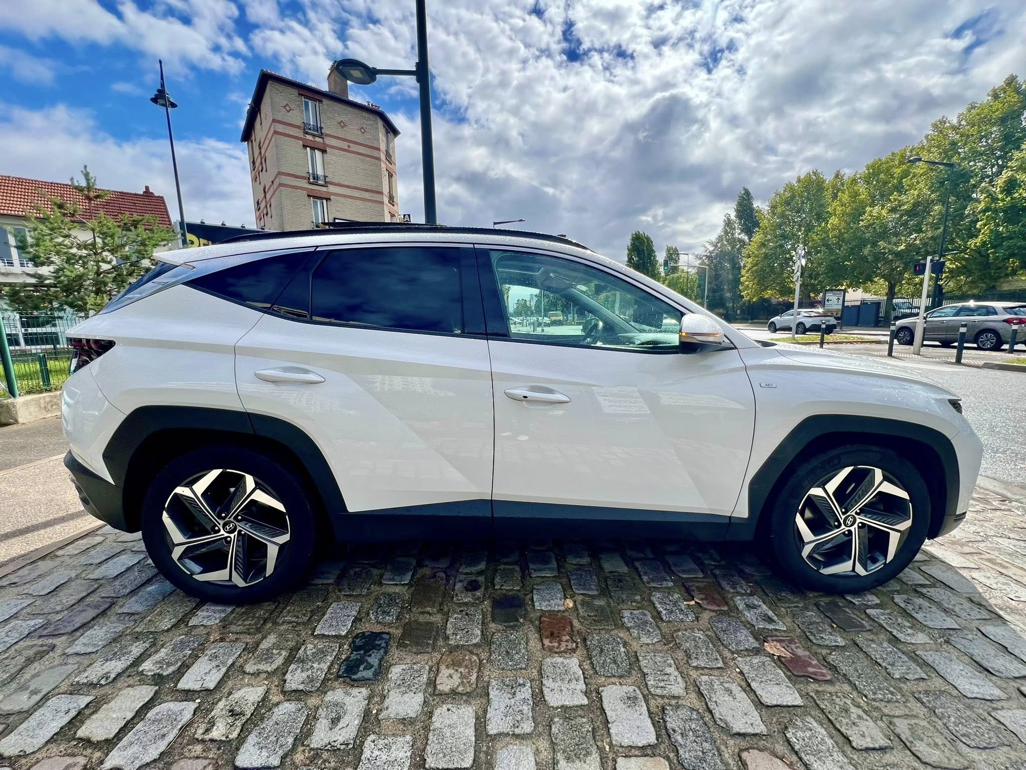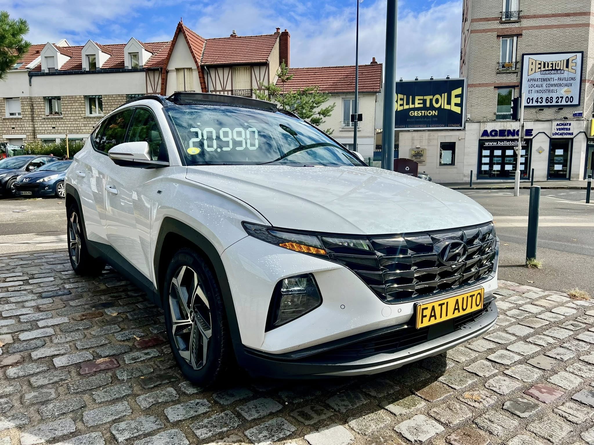Chers clients SAS FATI AUTO vous propose Hyundai Tucson IV 1.6 T-GDI HYBRID 48V IBVA tout-terrain, blanche 8 cv, 5 portes,