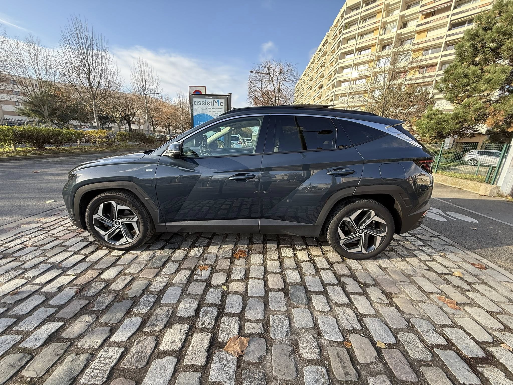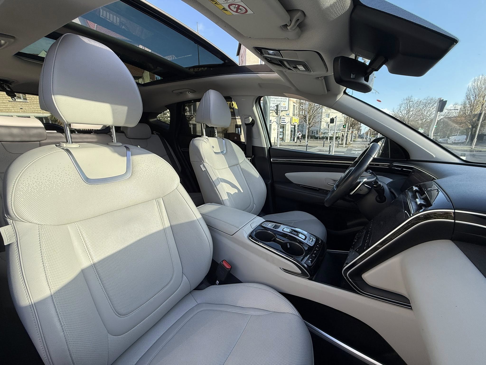 Chers clients SAS FATI AUTO vous propose Hyundai Tucson IV 1.6 TGDI 230 cv Essence HYBRID tout-terrain, grise 5 portes,