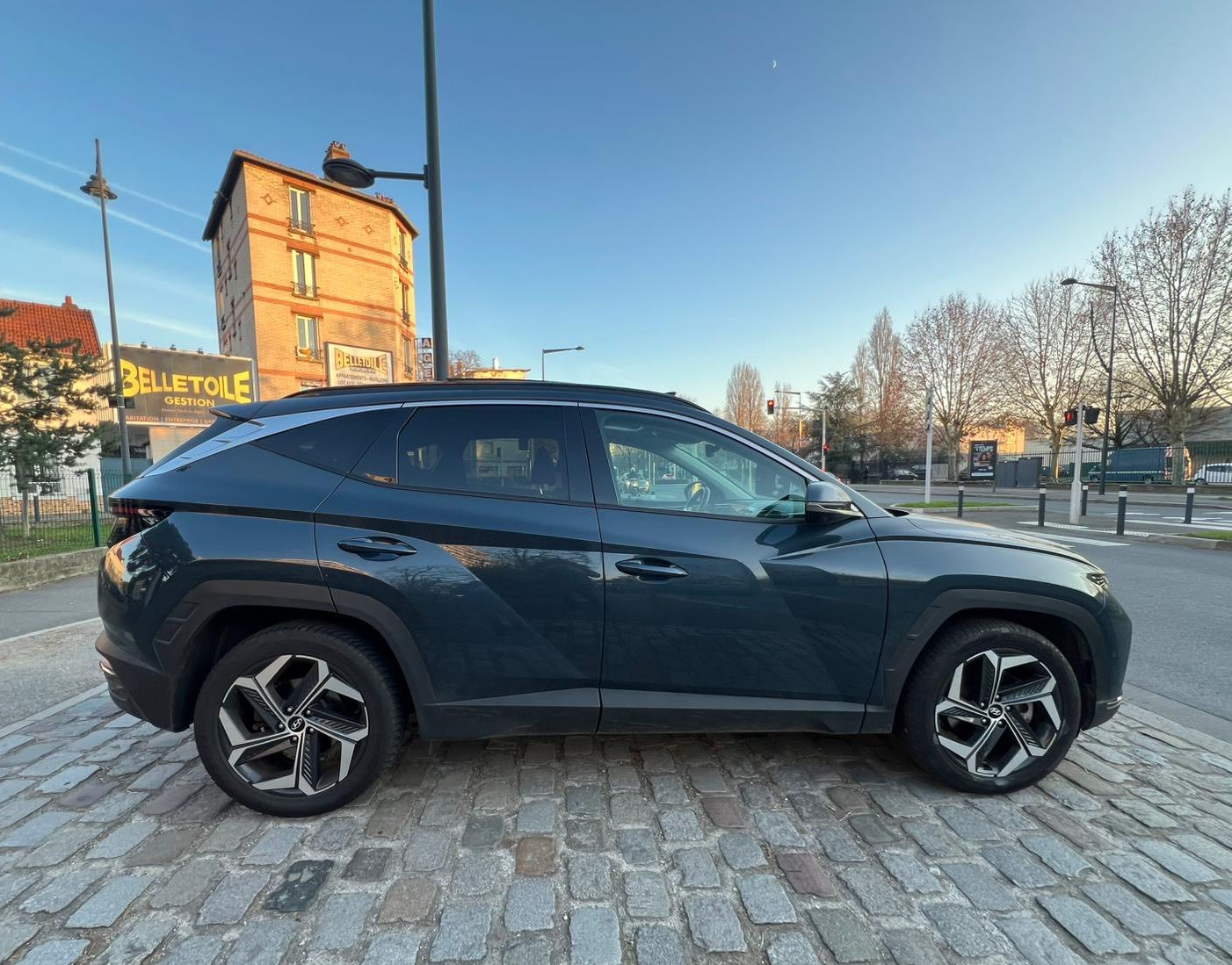 Chers clients SAS FATI AUTO vous propose Hyundai Tucson IV 1.6 TGDI 230 cv Essence HYBRID tout-terrain, grise 5 portes,