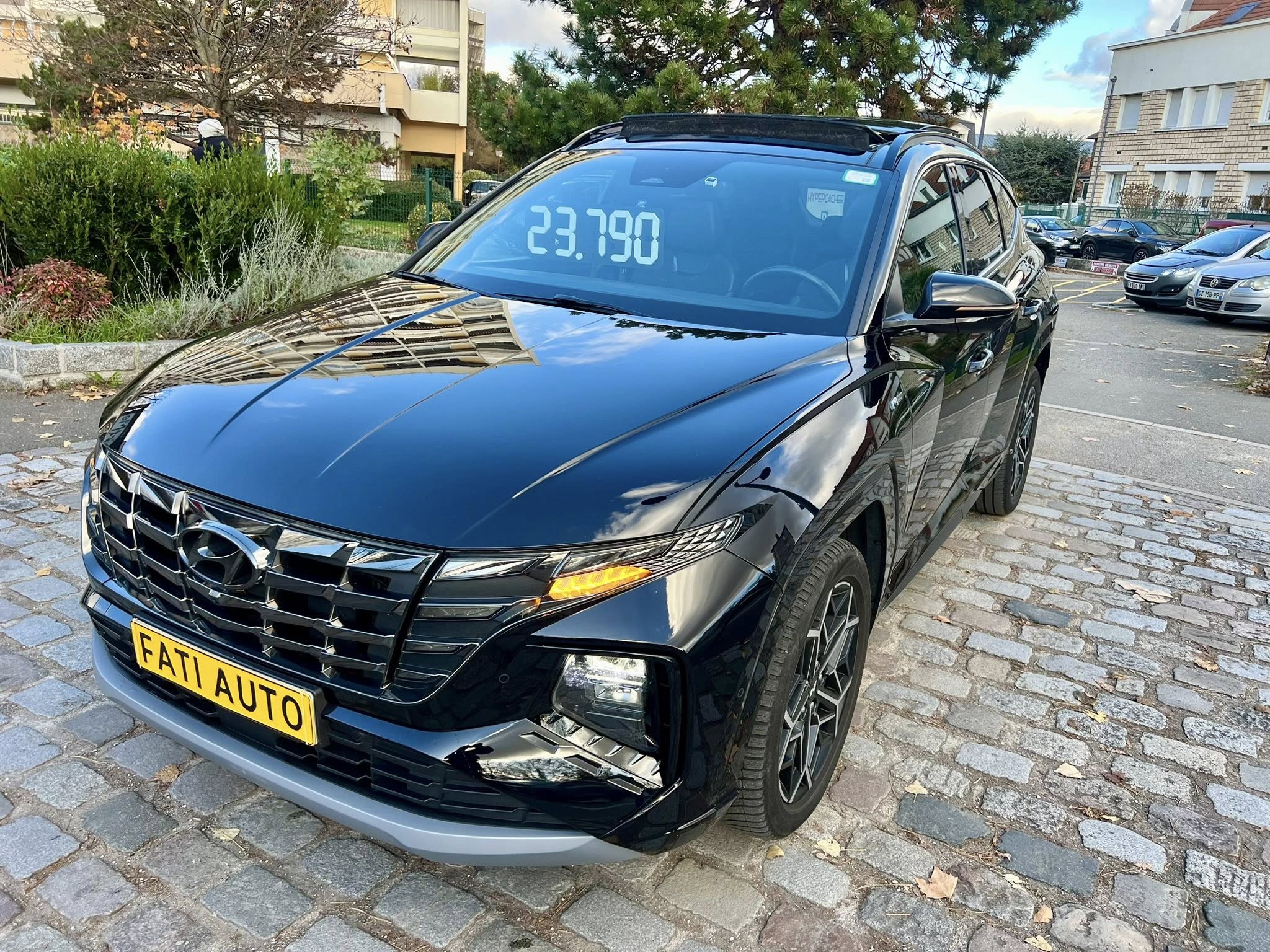 Chers clients SAS FATI AUTO vous propose Hyundai Tucson IV 1.6 crdi diesel HYBRID tout-terrain, blanche toit noir 5 portes,
